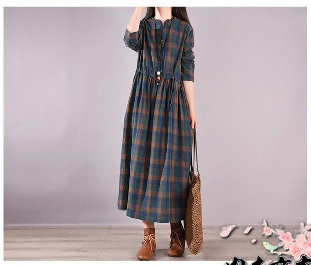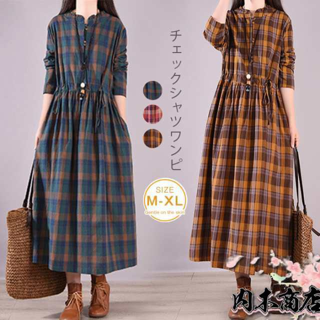 ワンピース レディース 秋 長袖 ロングワンピース チェック ロングワンピ ロング丈ワンピース マキシワンピース ミモレ ミモレ丈ワンピース ミモレ丈 ギンガムチェック ゆったり おしゃれ きれいめ 着痩せ 体型カバー 大人 可愛い 森ガール 春 冬