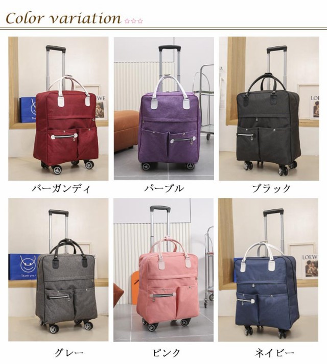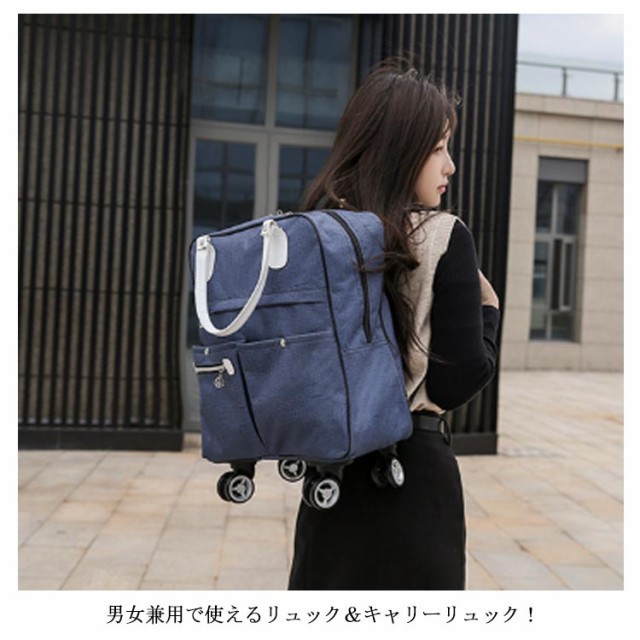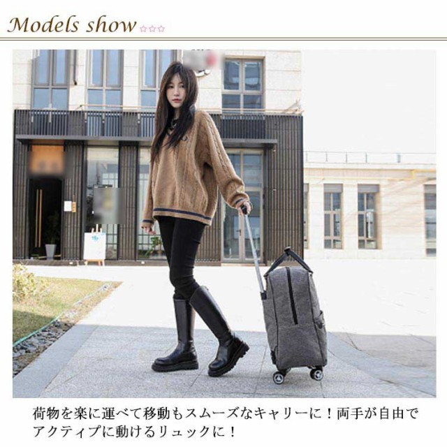 | 機内持ち込み可!キャリーとリュックができるおしゃれな2wayスーツケースです。 荷物を楽に運べて移動もスムーズなキャリーに!両手が自由でアクティプに動けるリュックに! 収納便利&省スペース! 使わないときはキャリー台に折りたたみ可能。 4輪のキャスター搭載してスムーズで軽やかな走行を可能にし、軽量な機内持ち込みサイズで短期旅行や帰省、出張、ショッピングなどに最適! 男女兼用で使えるリュック&キャリーリュック! | |