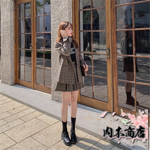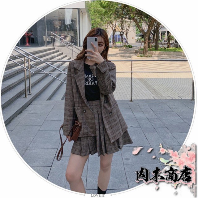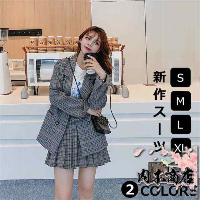スカートスーツ スーツセット レディース ジャケット プリーツスカート ビジネス 通勤 スーツスカート オフィススーツ 2点セット フォーマル 制服OL チェック柄
