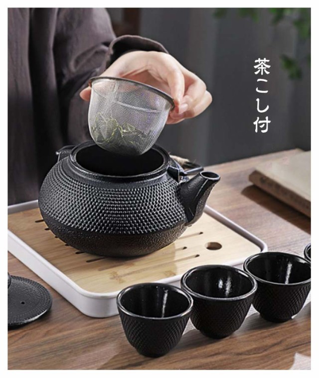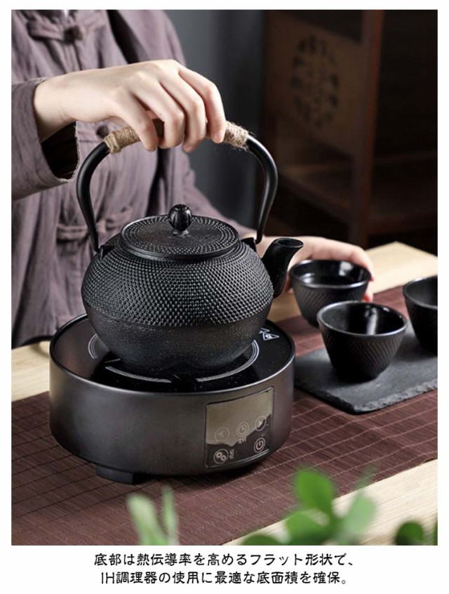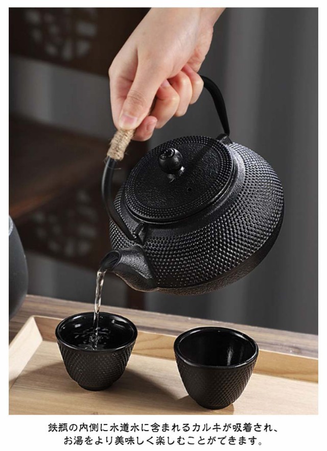 鉄瓶 やかん 鉄びん ヤカン 鉄製 大容量 急須 0.6l 0.9l 1.2l 直火 ih対応 ih おしゃれ コーヒー 直火 鉄分補給 茶道具 やかん 茶こし付