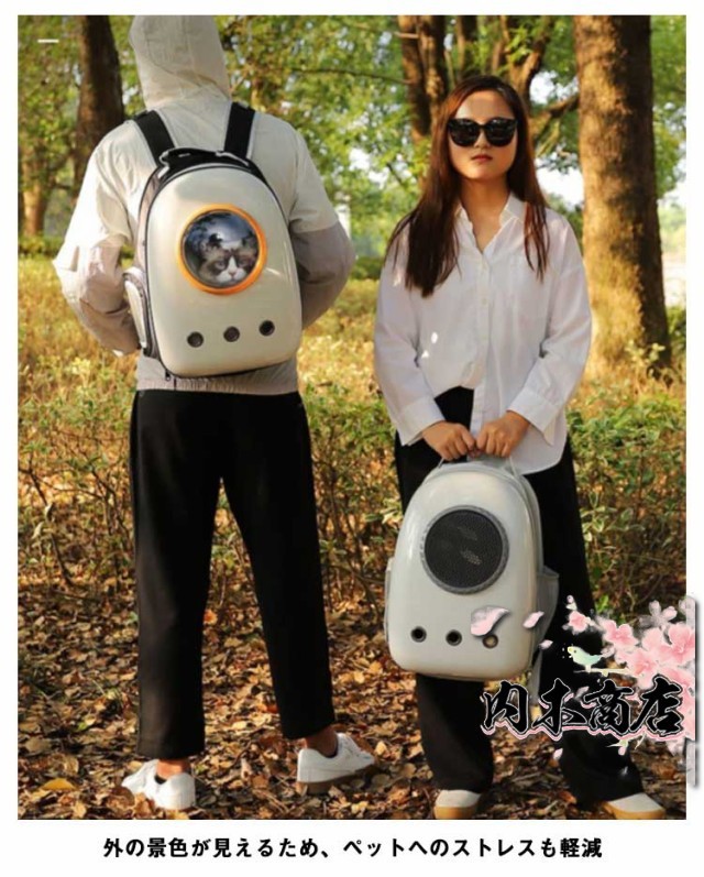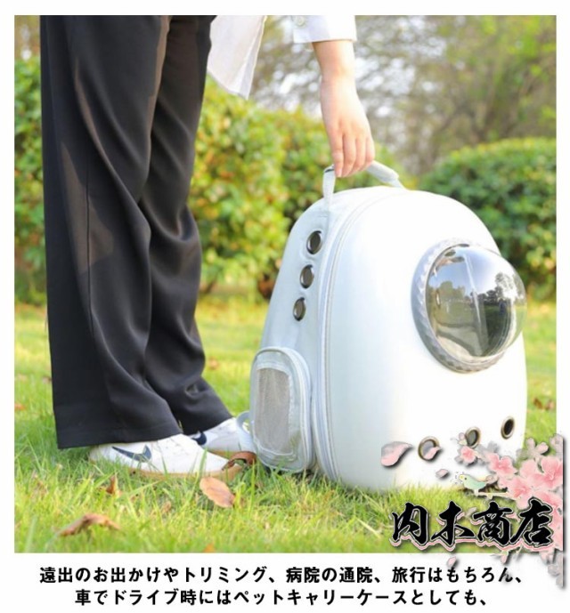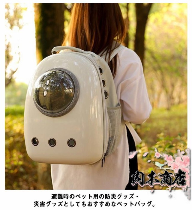 | シンプルでおしゃれなペットキャリーリュック 正面の透明なドーム窓から宇宙船に乗っているみたいにバックを開けずにいつでもペットの顔が見れるので 外の景色が見えるため、ペットへのストレスも軽減 遠出のお出かけやトリミング、病院の通院、旅行はもちろん、車でドライブ時にはペットキャリーケースとしても、 避難時のペット用の防災グッズ・災害グッズとしてもおすすめなペットバッグ。 | |