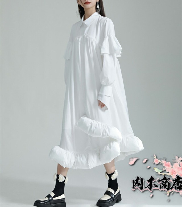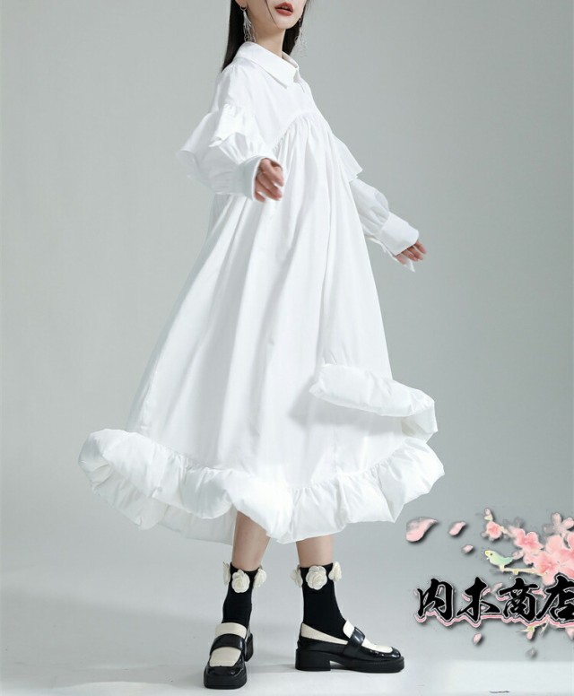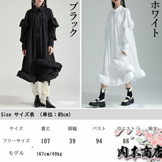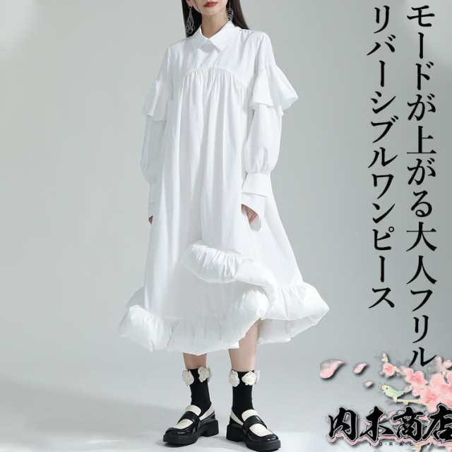 | 前後2wayフリルワンピース ワンピース レディース 長袖 フリルデザイン アシンメトリー ロングワンピ ワンピ ロング丈 マキシ丈 シャツワンピース 落ち感 モード系 個性的 ユニセックス 大人 カジュアル ゆったり きれいめ オフィス 楽ちん 秋 秋服 冬 冬服 とらみ 送料無料 |