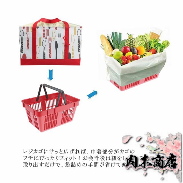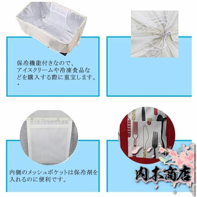 | ・マチが広くてたっぷり入る!お買い物やレジャーに最適! ・レジカゴにサッと広げれば、巾着部分がカゴのフチにぴったりフィット!お会計後は紐をしばって取り出すだけで、袋詰めの手間が省けて楽ちん。 ・保冷機能付きなので、アイスクリームや冷凍食品などを購入する際に重宝します。 ・内側のメッシュポケットは保冷剤を入れるのに便利です。 | |