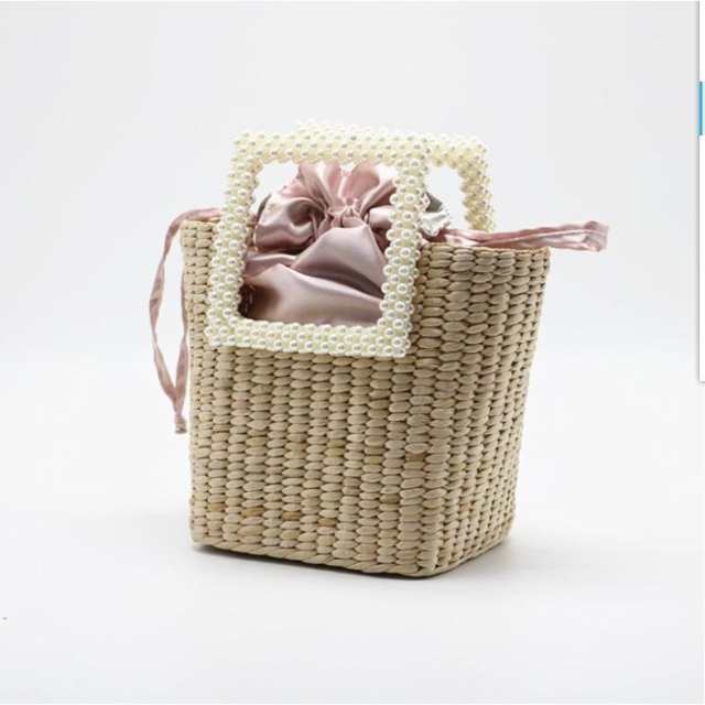 パールハンドルかごバッグ 巾着付きチェーンストラップ かごバッグ 夏 大人かわいい レジャー リゾートミニバッグショルダーバッグ
