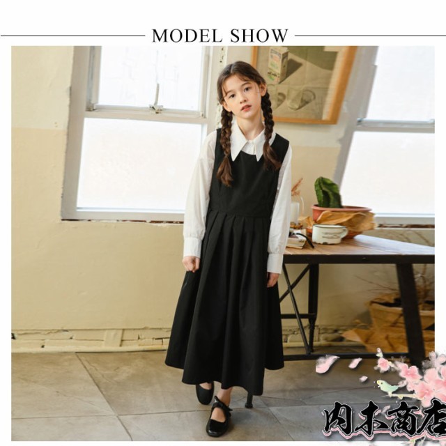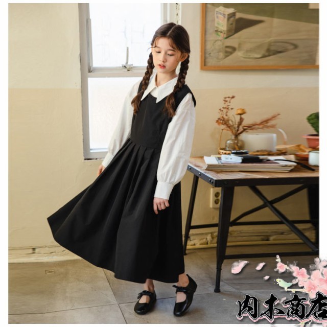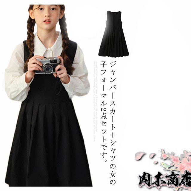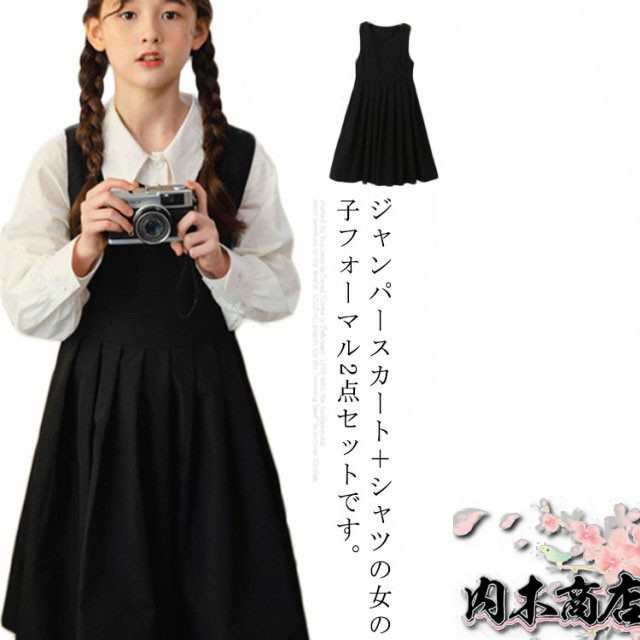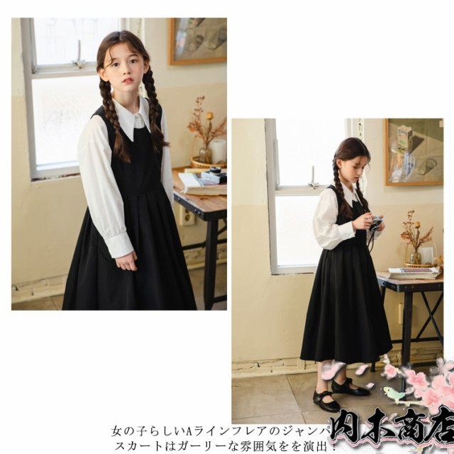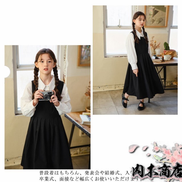 子供服 女の子 フォーマル セットアップ ジャンパースカート シャツ 長袖 キッズ ワンピース スーツ 小学生 中学校 通学 冠婚葬祭 喪服 結婚式 発表会 入学式 卒業式 無地 ジュニア 黒 ブラック