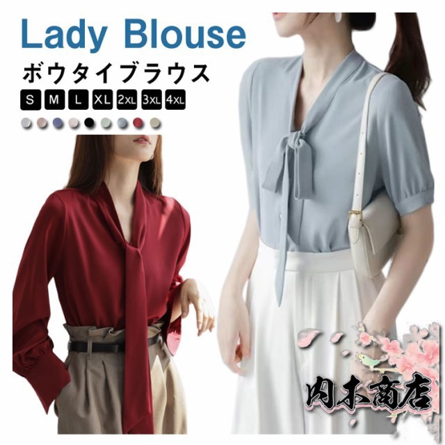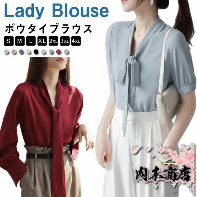 ボウタイ ブラウス 長袖 ブラウス シャツ レディース シルク風 ブラウス 長袖ブラウス 長袖シャツ 半袖ブラウス アセテート サテン ブラウス リボン ブラウス 半袖 長袖 ボウタイ付き フリル ブラウス トップス フェミニン 通勤 フォーマル 送料無料
