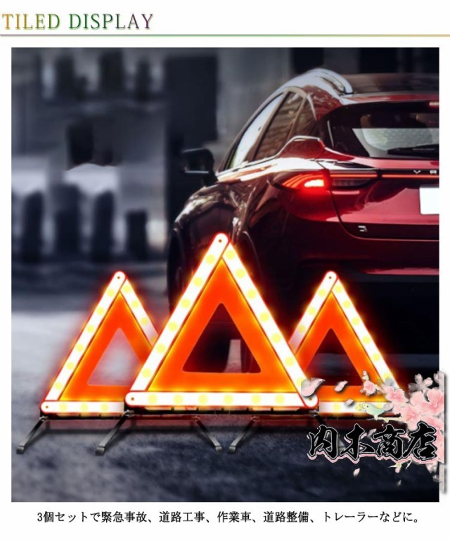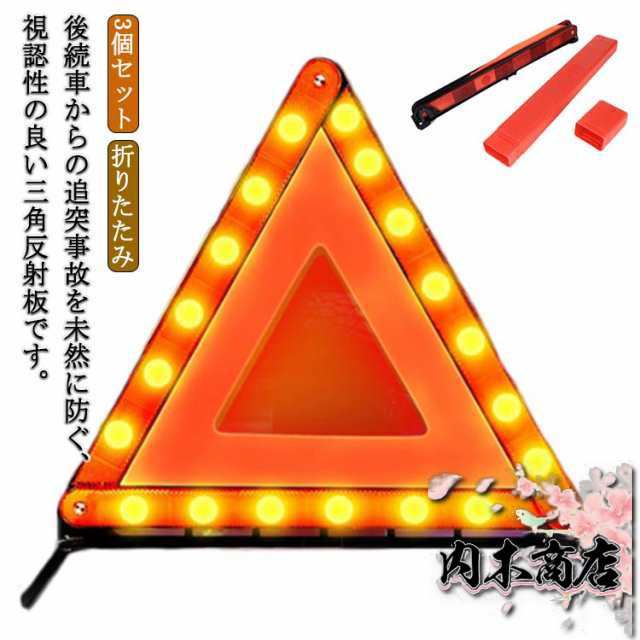 三角表示板 収納ケース付き 3個セット 三角停止板 反射板 非常信号灯 三角反射板 三角板 三角表示灯 大型反射板 緊急用 折りたたみ 車載用 コンパクト収納 昼夜兼用 送料無料