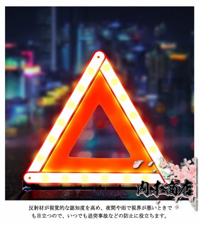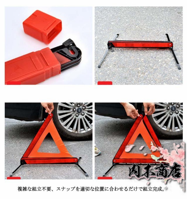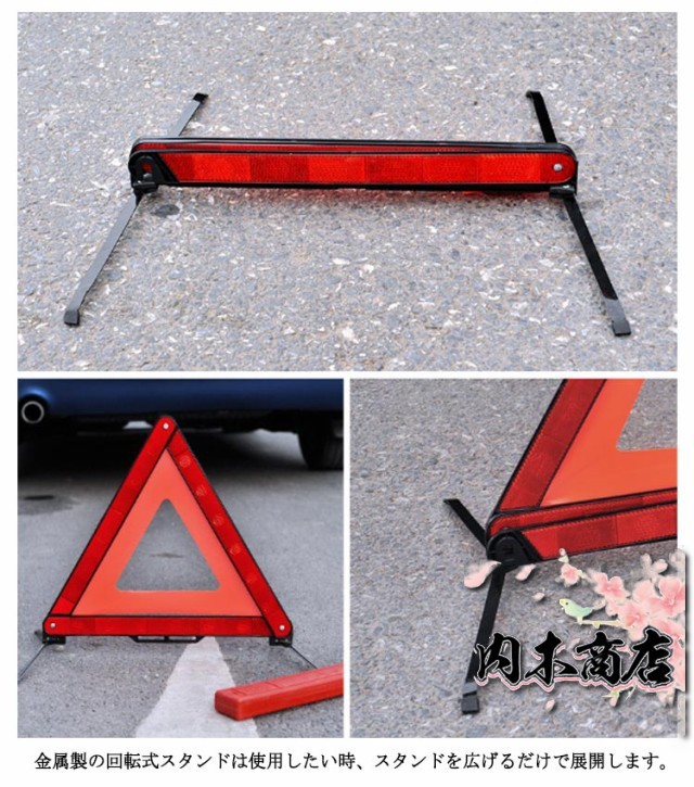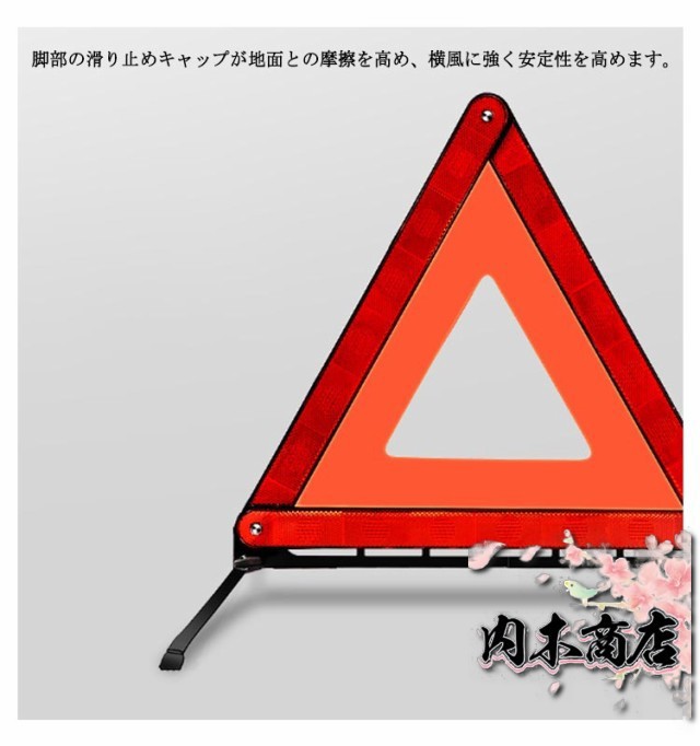 | 後続車からの追突事故を未然に防ぐ、視認性の良い三角反射板です。 反射材が視覚的な認知度を高め、夜間や雨で視界が悪いときでも目立つので、いつでも追突事故などの防止に役立ちます。 大型・強い反射で夜間でも見やすく、後方車両の警告に。 脚部の滑り止めキャップが地面との摩擦を高め、横風に強く安定性を高めます。 金属製の回転式スタンドは使用したい時、スタンドを広げるだけで展開します。 複雑な組立不要、スナップを適切な位置に合わせるだけで組立完成。 3個セットで緊急事故、道路工事、作業車、道路整備、トレーラーなどに。 | |