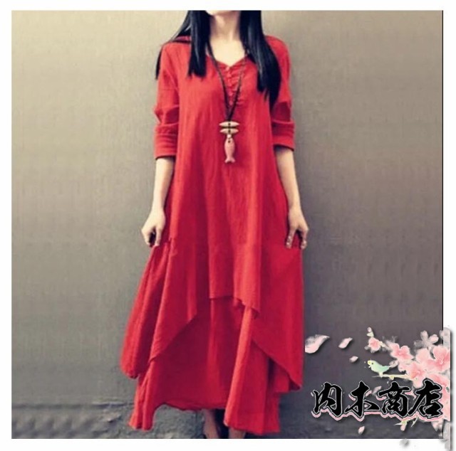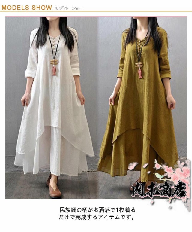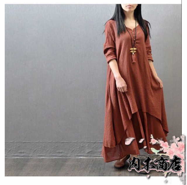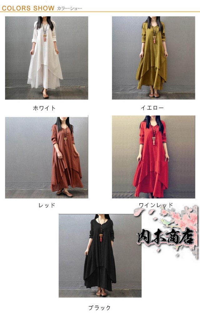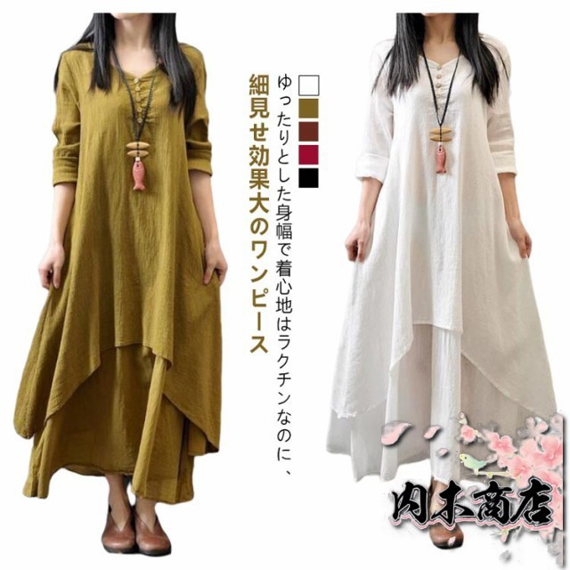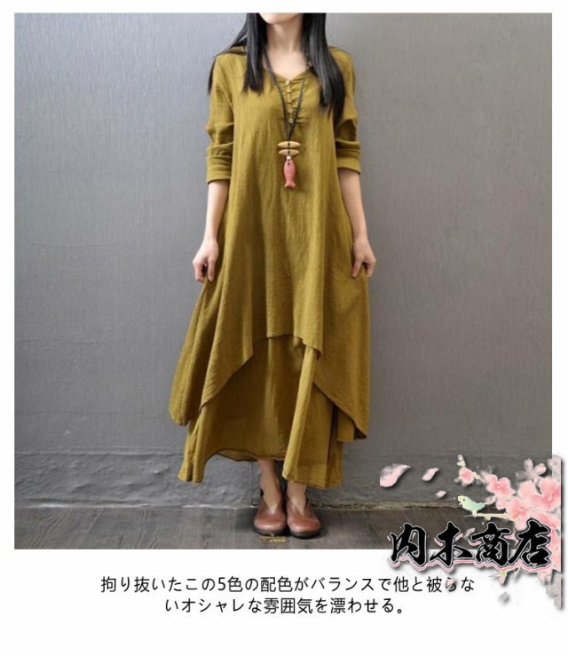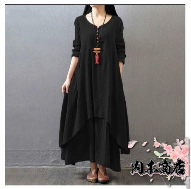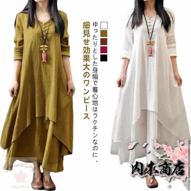 ロングワンピース リネンワンピース 無地 ロング 森ガール ワンピース レディース 長袖 コットンリネン きれいめ リゾート マキシワンピース マキシ丈 大きいサイズ ゆったり 体型カバー Aライン 民族風 カジュアル 春 夏 秋冬 シンプル 綿麻