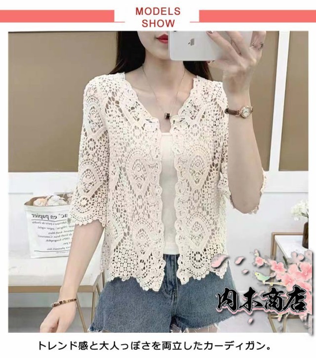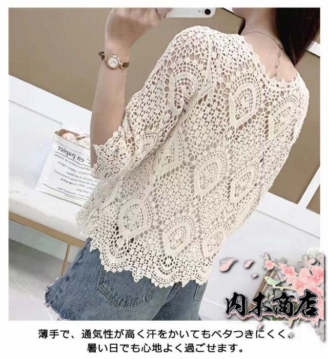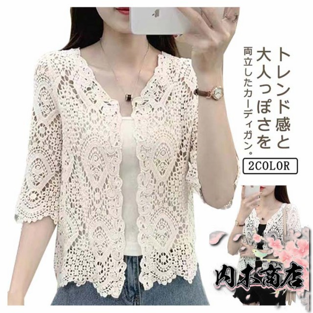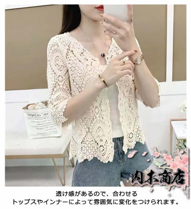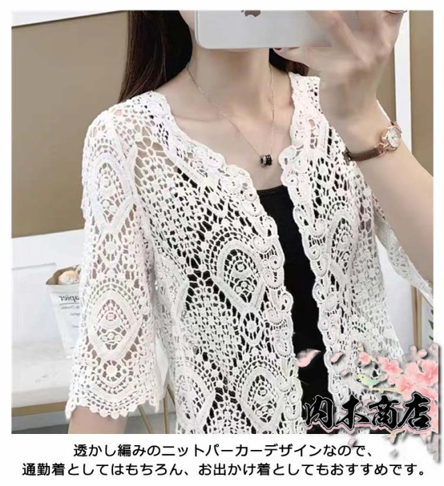 サマーカーディガン レース レディース 薄手 カーディガン 透かし編み ボレロ 羽織り 7分袖 カーディガン ショート丈 トップス 日焼け対策 冷房対策 カジュアル 大人可愛い ライトアウター 春 夏 秋 20代 30代 40代 送料無料