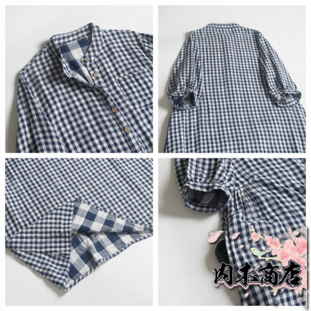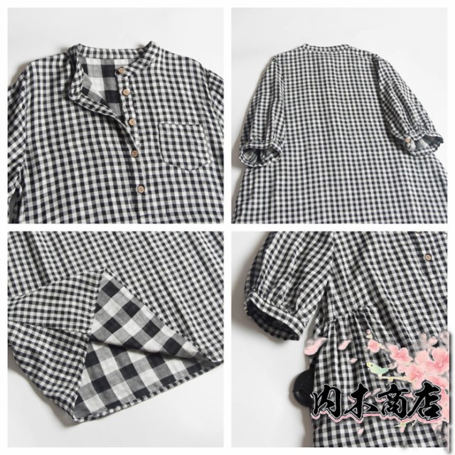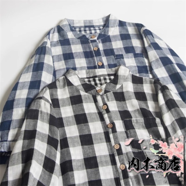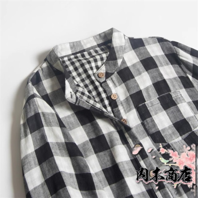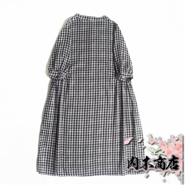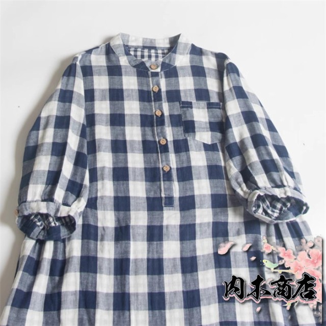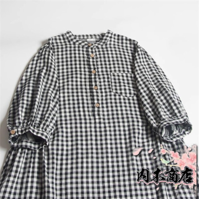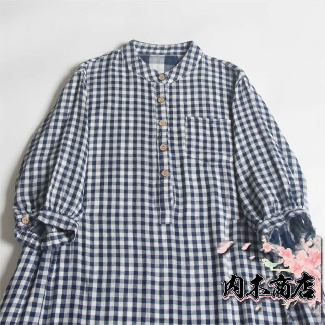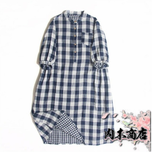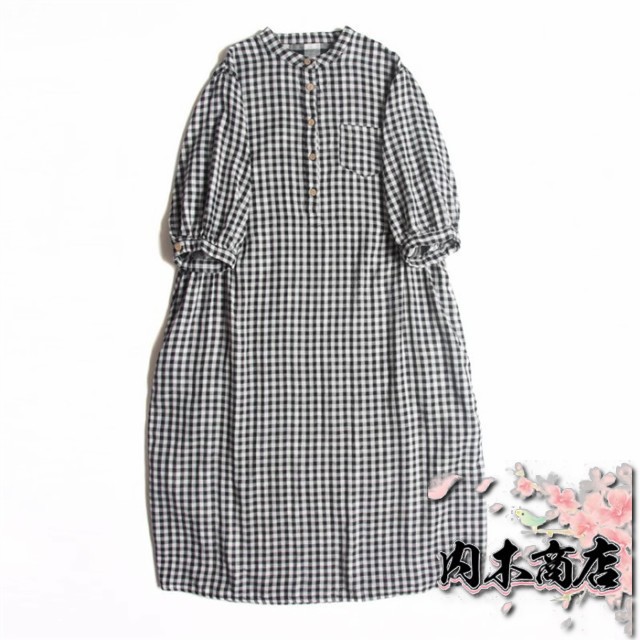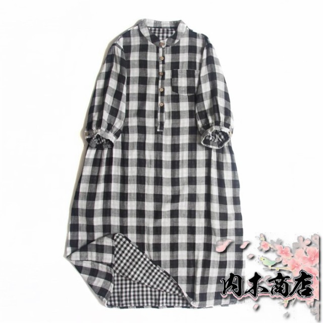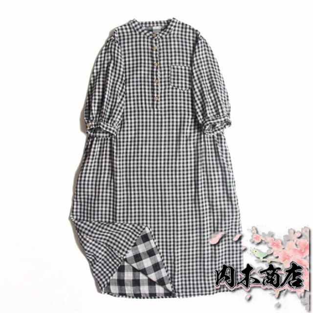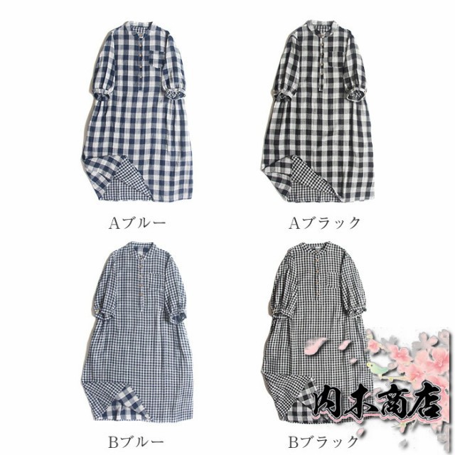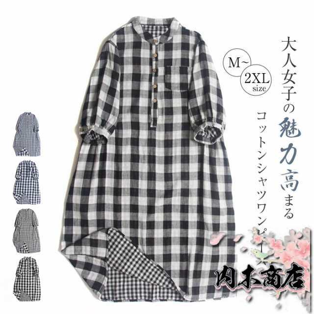 コットン シャツワンピース チェック レディース 半袖 スタンドカラー シャツワンピース ギンガムチェック 綿ワンピース 春 夏 ロングワンピース ミモレ丈 大きいサイズ ゆったり 柔らかい 体型カバー 大人 ナチュラル カジュアル 送料無料
