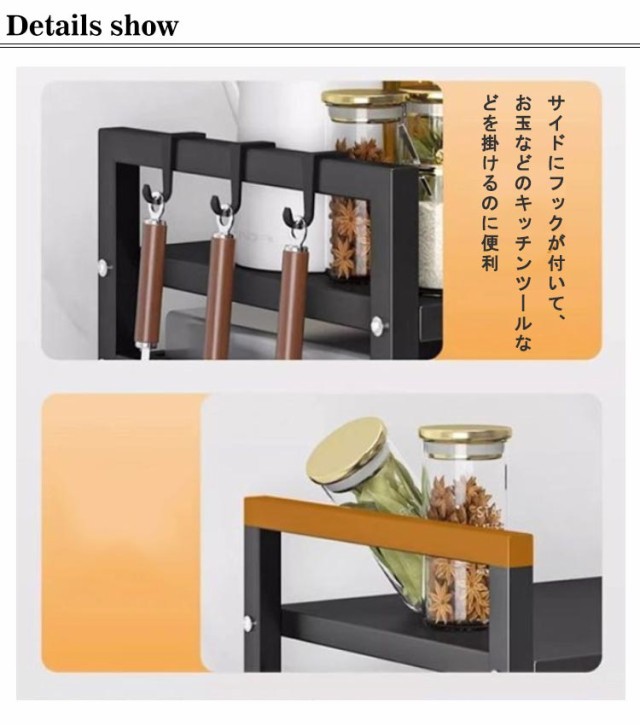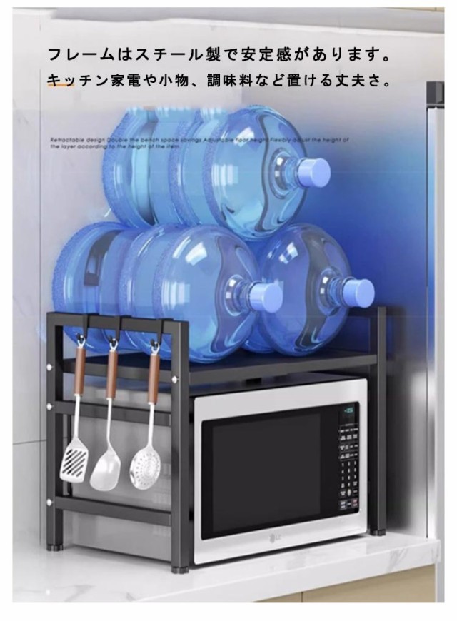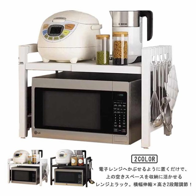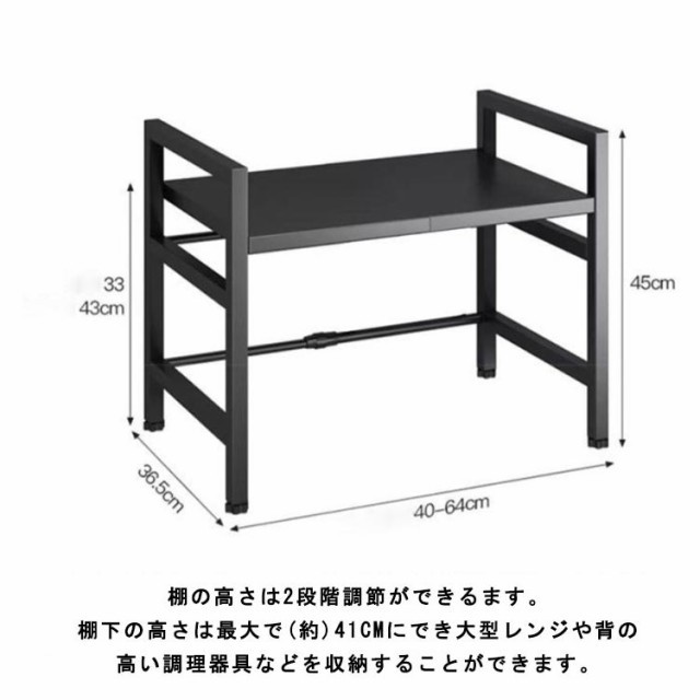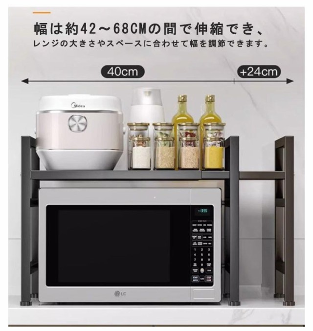 レンジ上ラック レンジ上 ラック キッチンラック 伸縮 幅42?68cm 卓上 高さ調整 フック付き トースターラック 伸縮式 レンジ台 キッチン