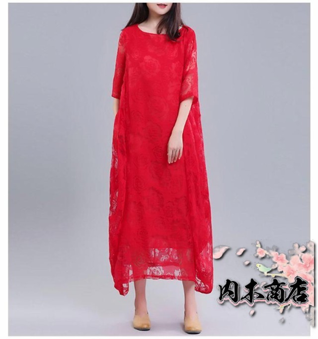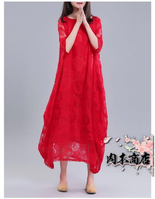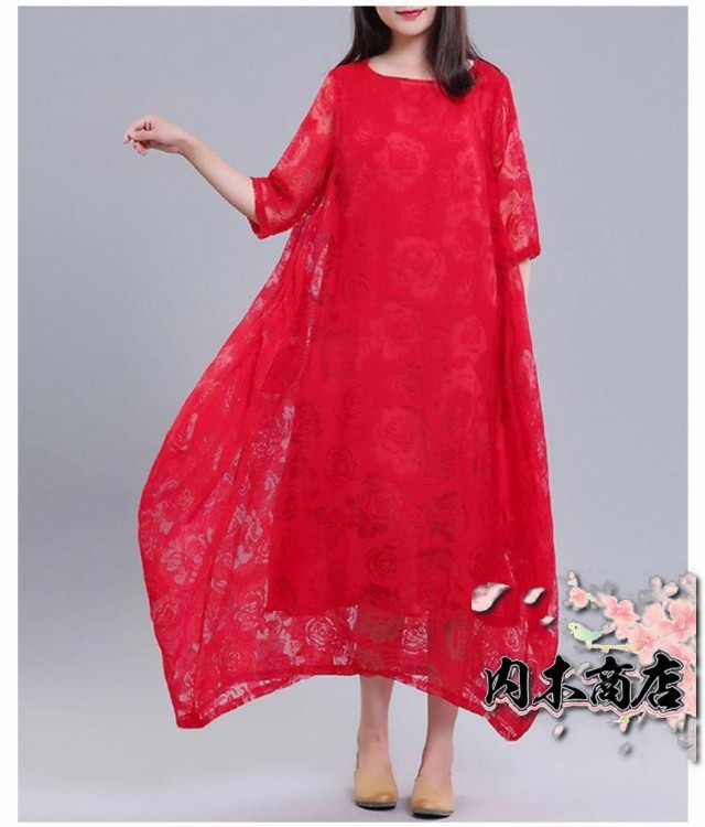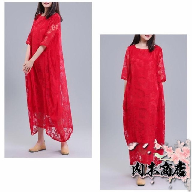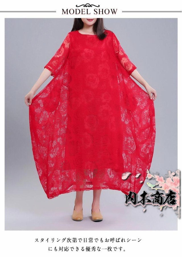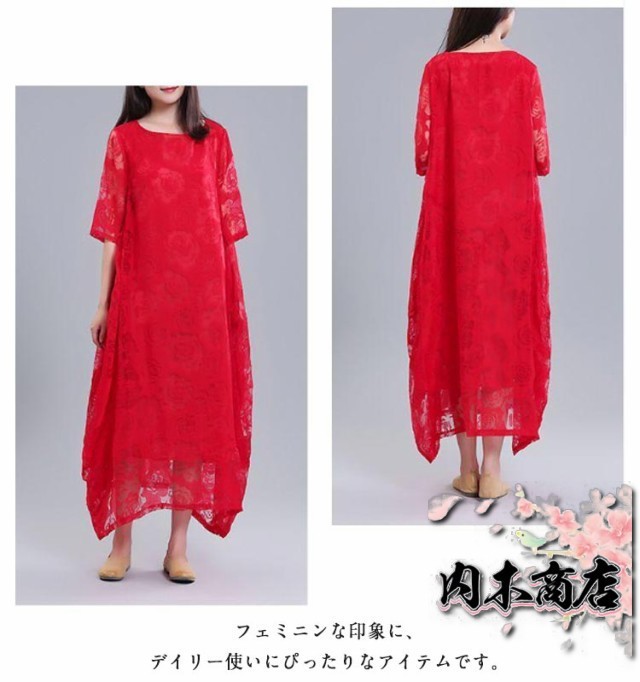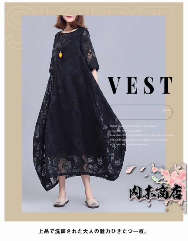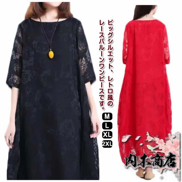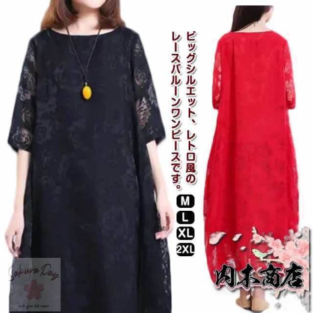 レディース きれいめ 夏 バルーンワンピース ワンピース コクーンワンピース マキシワンピース ロングワンピース 半袖 体型カバー シースルー XL 着痩せ 大人らしい ビッグシルエット M L レースワンピース
