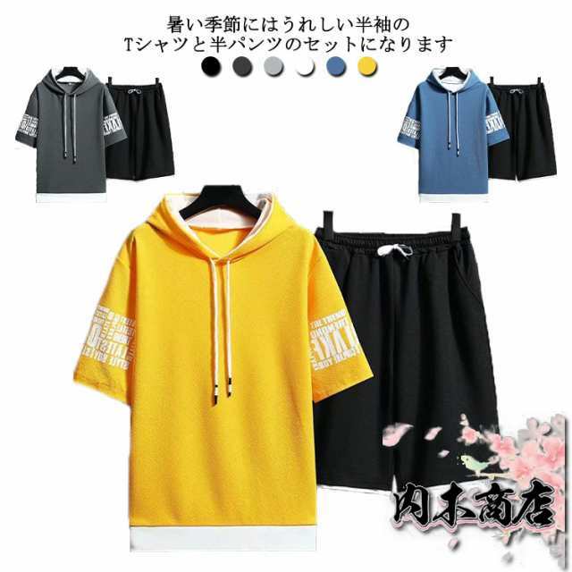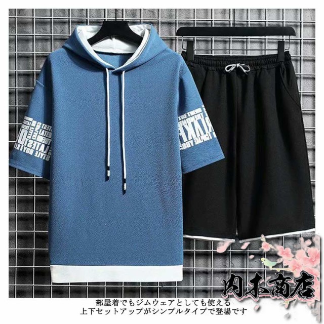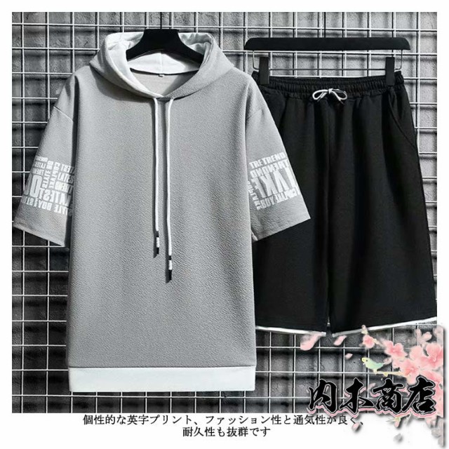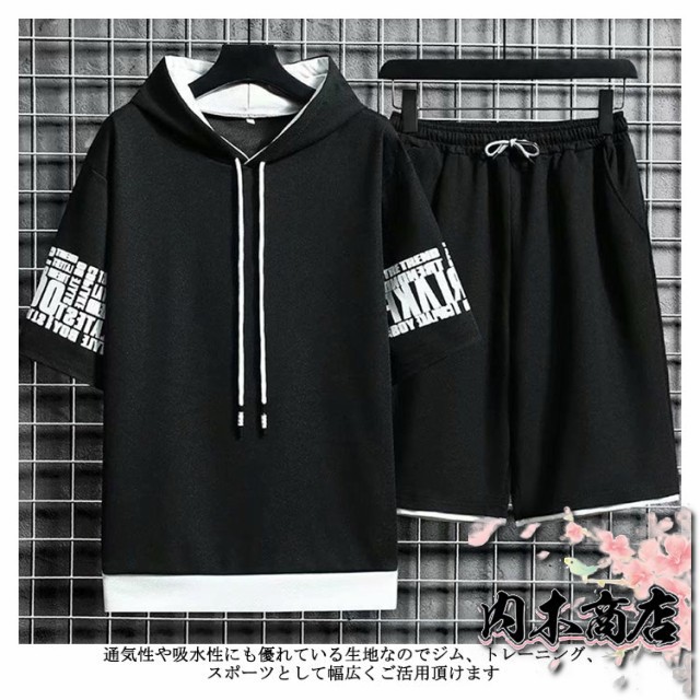 半袖パーカー メンズ セットアップ 上下セット フード付き パーカー 半袖 ハーフパンツ 冷感 ロングパンツ 運動着 スポーツウエア 大きサイズ 夏 夏服 夏物 春服 秋服