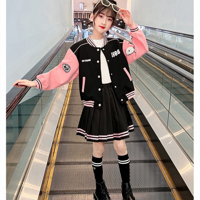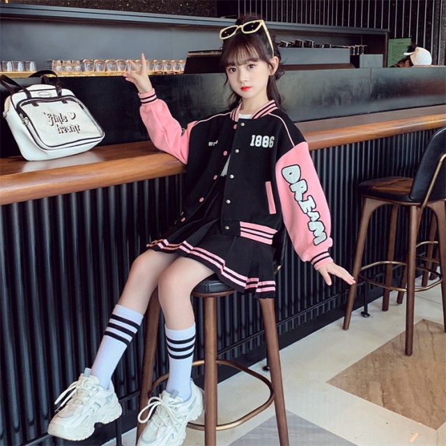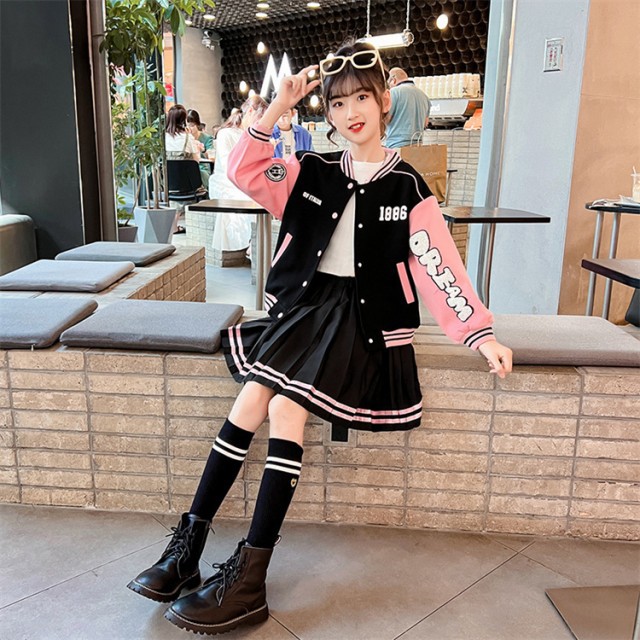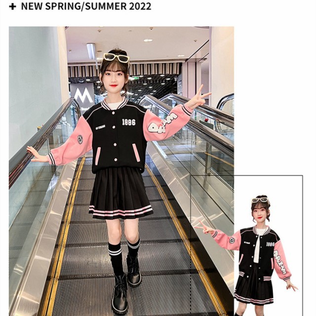 韓国子供服 セットアップ 上下セット 女の子 秋用 秋冬 スタジャン スカート キッズ春秋 新作