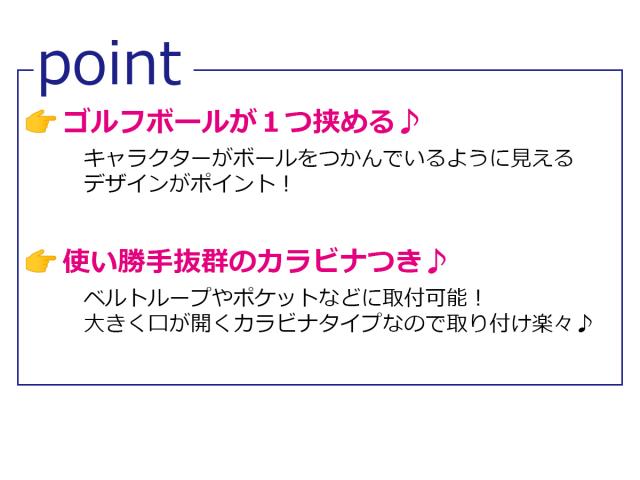 おなかの部分にゴルフボールを挟んで使用するキュートなゴルフポーチです。