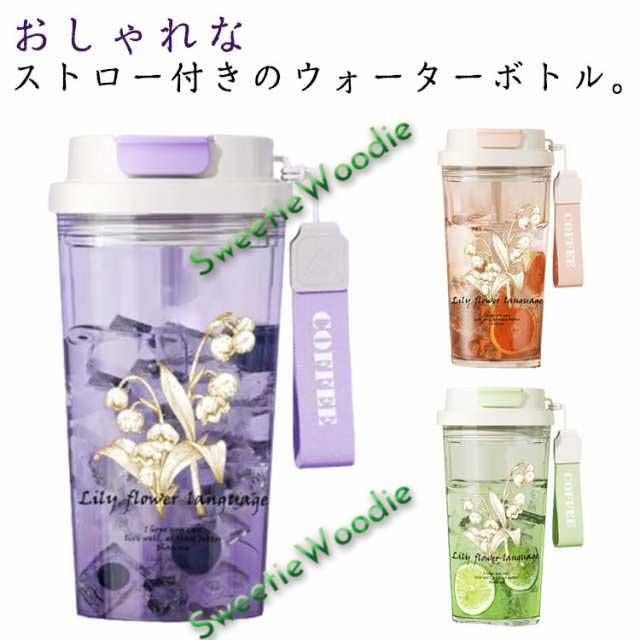 ストロー付き 花柄 ストロー付き水筒 大容量 マイボトル クリアボトル ストロー付き水筒 580ml 大容量 ウォーターボトル 持ち運び 直飲み マグボトル おしゃれ 軽量 ギフト プレゼント ペア おそろい パープル ピック