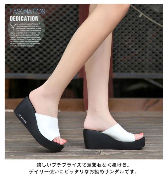 ギフト サボ 靴 レディース シューズ 厚底サンダル ミュールサンダル ウエッジ つっかけ スリッパ 美脚 疲れない 6.5cmヒール サンダル ウェッジソール 歩きやすい おしゃれ オフィス 滑りにくい スタイルアップ 美脚効果 脚長効果 夏 大人女性 カジュアル