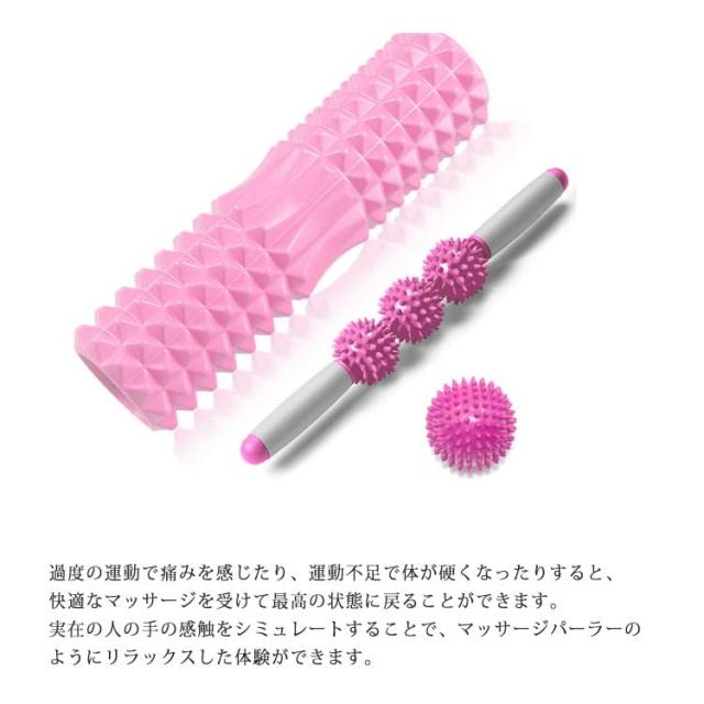 3点セット ヨガポール トレーニングチューブ マッサージローラー マッサージ ボール ダイエット フォームローラー ストレッチ エクササイズ 持ち運びやすい トレーニング器具