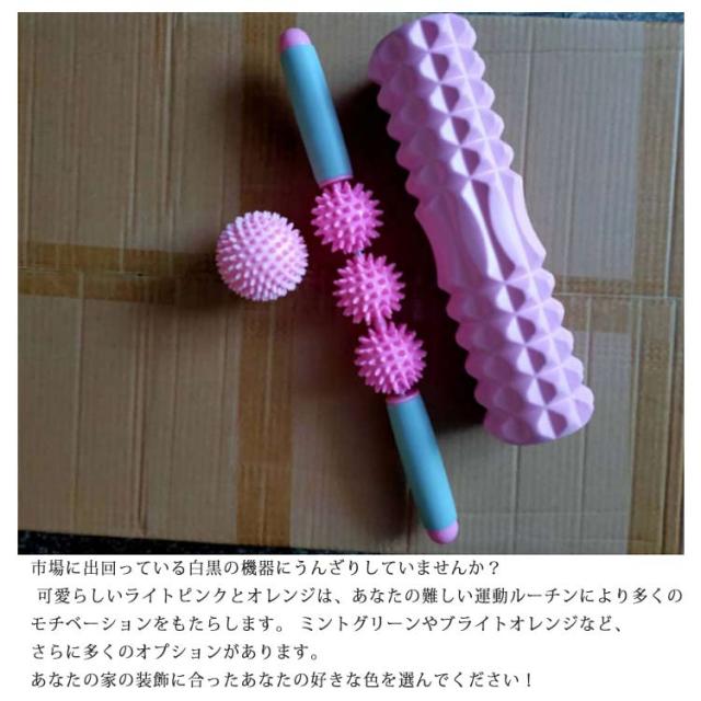| 【快適なマッサージ体験】シャフトボディには2つのサイズの凹凸が付属しており、指先と手のひらのプレス体験を完全にシミュレートし、タイトな筋膜を浅いものから深いものまでマッサージします。過度の運動で痛みを感じたり、運動不足で体が硬くなったりすると、快適なマッサージを受けて最高の状態に戻ることができます。実在の人の手の感触をシミュレートすることで、マッサージパーラーのようにリラックスした体験ができます。姿勢指導と合わせて、足、背中、肩、腕など、体のあらゆる部分に適しています。忙しい一日の仕事毎日と夜あなたの痛みと座りがちな体をマッサージしてください。 ?2021年にアップグレードされたバージョンセット?新しく追加されたヨガマッサージボール、マッサージローラースティック。体の全方位(手のひら、腕、足裏など)にリリースしましょう! ?【完全防水で洗浄が簡単】激しい運動をした後も、体に汗が出て、マッサージ小道具を使いたくないですか? このようなトラブルはもうありません!どんな汚れ液でも、雑巾やウェットティッシュで拭き取ることができます。 特有の臭いを残しません。 洗浄と消毒の要件が高い場合は、フォームローラーを水で完全に洗浄しても大丈夫。 あなたが慣れている方法でそれをきれいにしてください! ?【用途が広いがコンパクト!】 適切なサイズにより、余分なスペースを占める大型の製品とは異なり、どこにでも簡単に保管できます。 また、付くのネットバッグを使って目立たない場所に掛ける方も多いです。 好きなように保管してください。新しいマルチカラーデザインはあなたの個性を満たします。 市場に出回っている白黒の機器にうんざりしていませんか? 可愛らしいライトピンクとオレンジは、あなたの難しい運動ルーチンにより多くのモチベーションをもたらします。 ミントグリーンやブライトオレンジなど、さらに多くのオプションがあります。 あなたの家の装飾に合ったあなたの好きな色を選んでください! | |