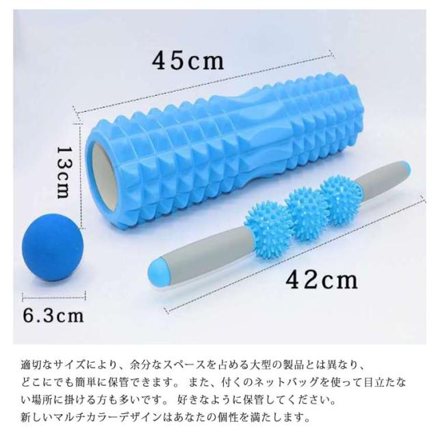 | サイズについての説明 | ヨガポール:6.3cm トレーニングチューブ:45*13cm マッサージローラー:42cm |