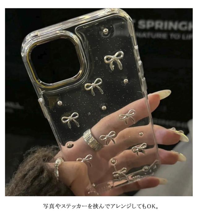16plus Plus iPhone16pro iphone 2個入り 14 iPhone16 16promax ケース ケース pro ケース ケース ケース iphone14 iPhone15 iphone13 ケース Pro Max 15 iphone11 ケース ミニリボン パール 透明 おしゃれ 韓国 可愛い クリアケース きらきら ラメ入り シルバー