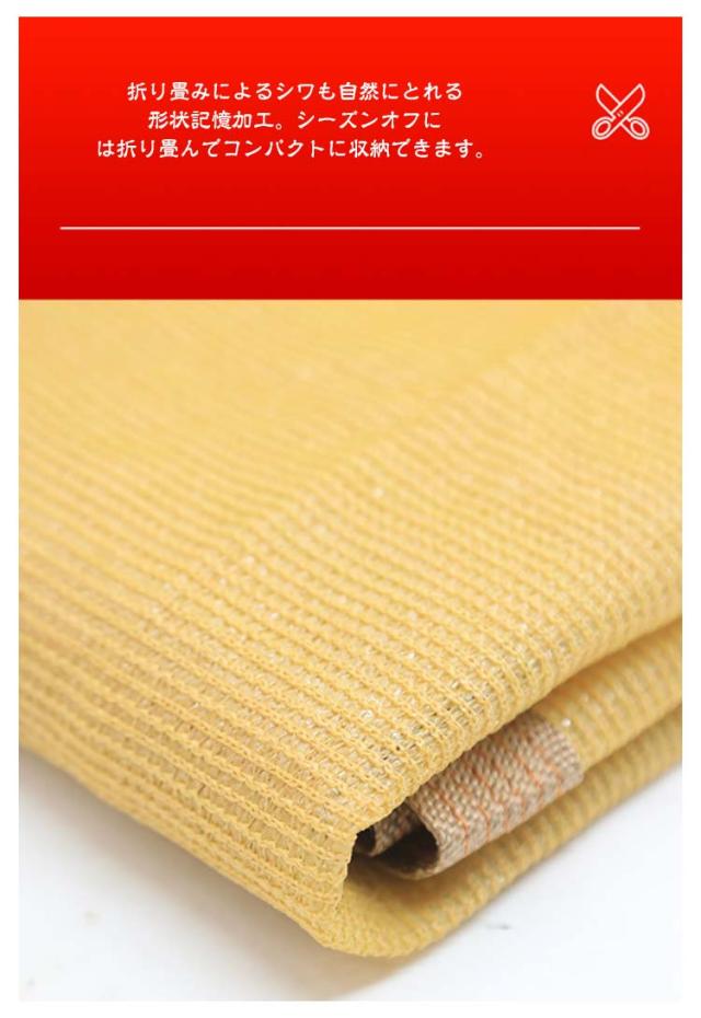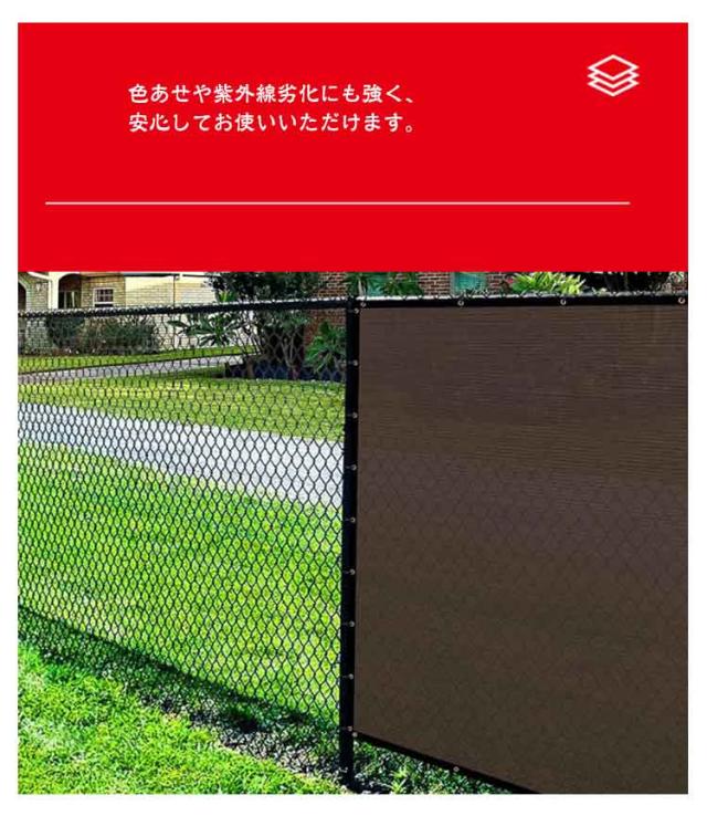 | 【長さ3/4/5/6M】【目隠しシェード】【7サイズ】 日よけや目隠しに便利な通気性が高いバルコニーシェードです。 ベランダやフェンスのサイズにぴったりのバルコニーシェード。目かくしや日よけ、物の転落防止など用途は様々です。 シェード生地は紫外線を約90%カット、遮光率は約85%。優れた通気性で熱気を逃し、風の涼しさと明るさで快適空間を作ります。色あせや紫外線劣化にも強く、安心してお使いいただけます。 生地が汚れたら、ブラシなどを用いて水で洗って繰り返しお使いいただけます。長くお使いいただけるポイントです。 紫外線に強く色褪せにくい優れた耐候性。折り畳みによるシワも自然にとれる形状記憶加工。シーズンオフには折り畳んでコンパクトに収納できます。 | |