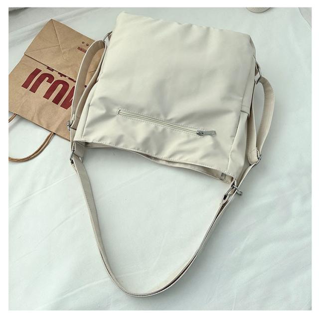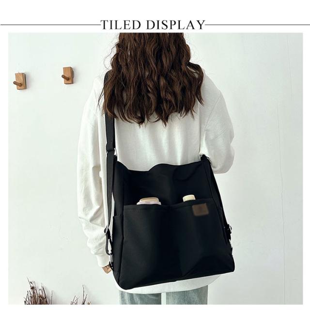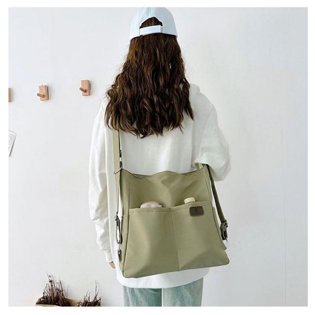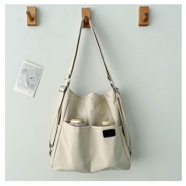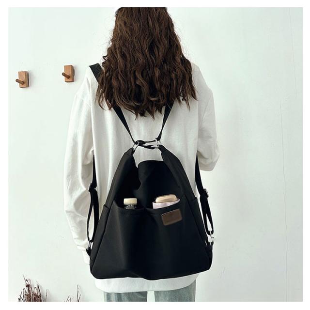 | 日常の必需品をまとめて収納できる大容量のショルダーバッグです。 ショルダーベルトの長さは調節可能で、リュック、ショルダーバッグ、斜め掛けバッグになります。 中央にファスナー付きがついているので貴重品なども安心です。 大きな開き口で、中身が見やすく、物が落ちる心配がありません。 撥水加工を施したナイロン素材なので、少しの雨ぐらいなら安心です。 両側のサイドポケットには口紅、鍵、イヤホンなどの小物を収納できます。 通学、通勤用はもちろん、ちょっとした旅行バッグとしても使えます。 | |