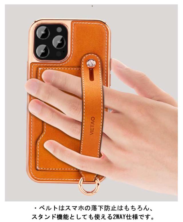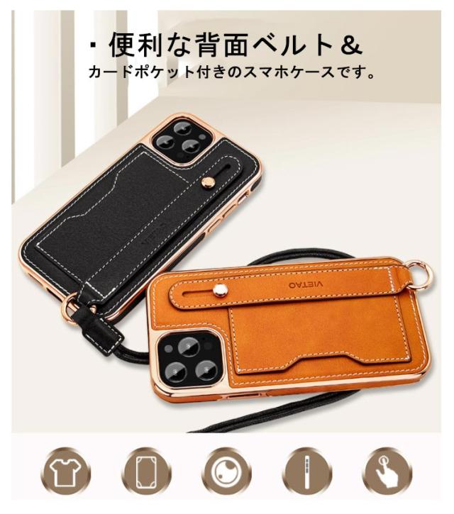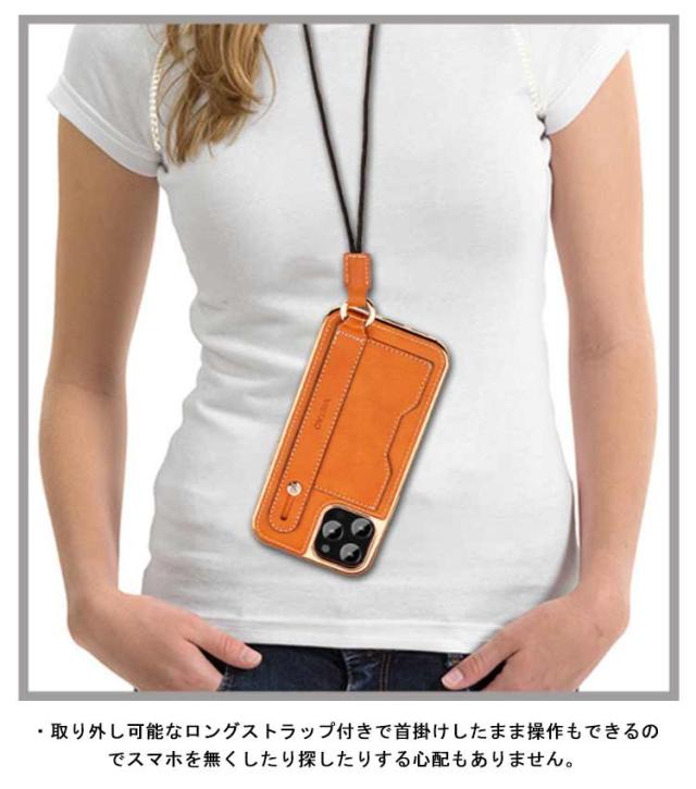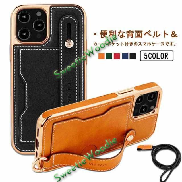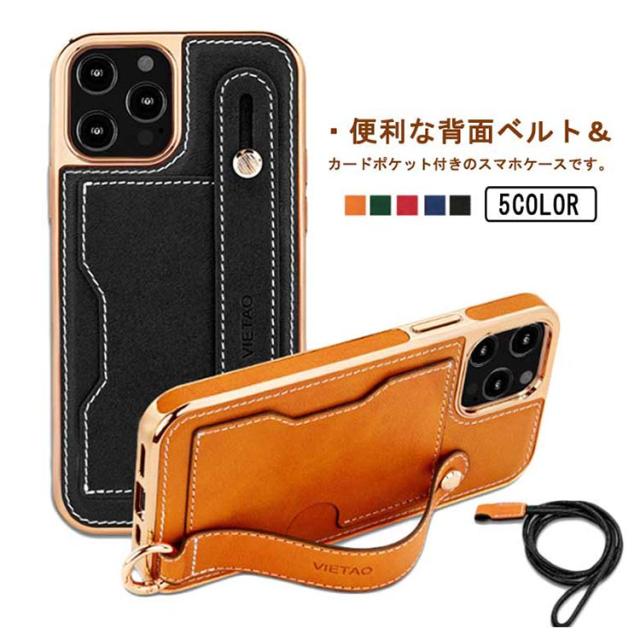 iPhoneケース iPhone14ケース iPhone13カバー カードポケット 収納 スタンド機能 ストラップ付 首掛け 耐衝撃 落下防止の背面ベルト メンズ レディース ギフト おしゃれ 大人 可愛い 合皮 全5色