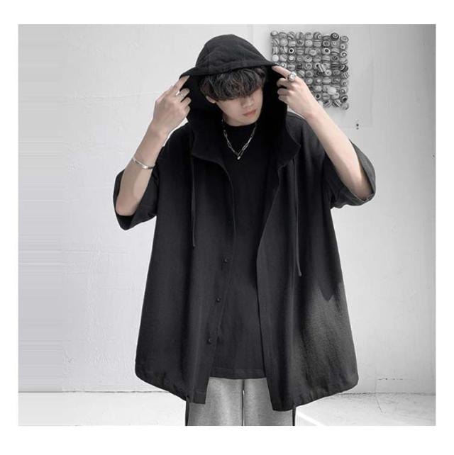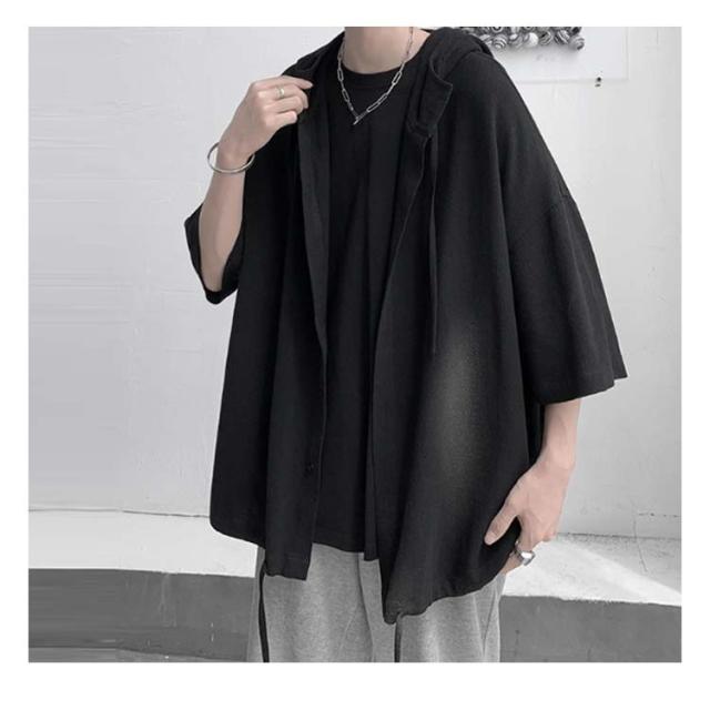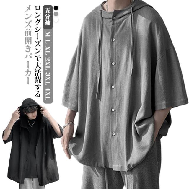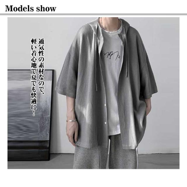 カーディガン 前開き 五分袖 五分袖 パーカー カジュアル 薄手 tシャツ ストリート系 トップス 半袖 大きいサイズ ライトアウター サマーパーカー フード付き 夏服 おしゃれ 大きいサイズ ゆったり 体型カバー 学生 無地 シンプル