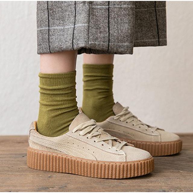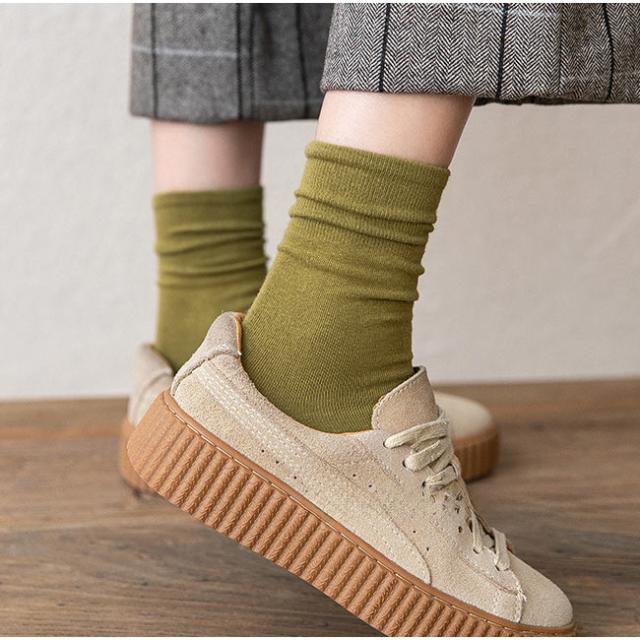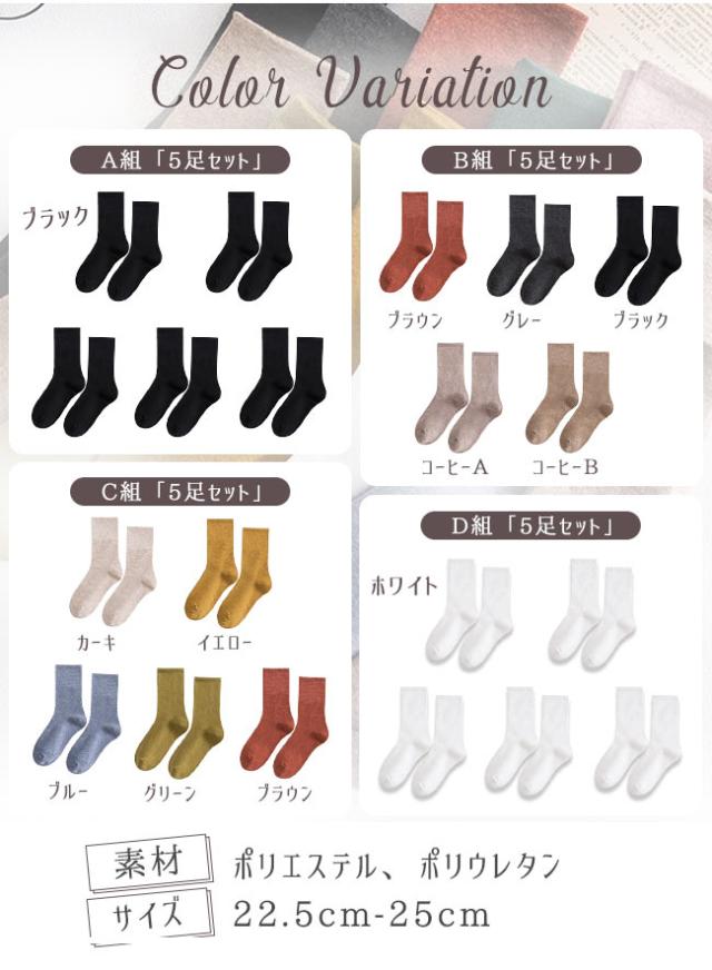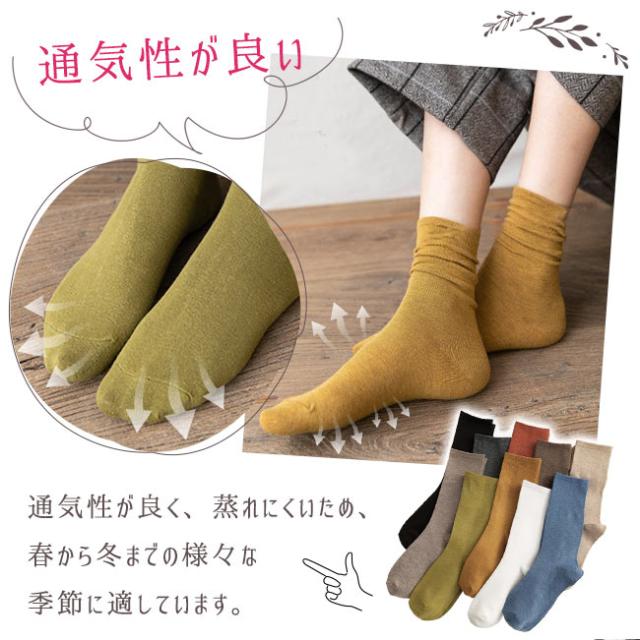 【2点15%OFF】夏新作 靴下 5足セット レディース ソックス おしゃれ くしゅくしゅ クルー丈 クルーソックス くつ下 無地 蒸れない 通気性 カジュアル シンプル 通勤 通学