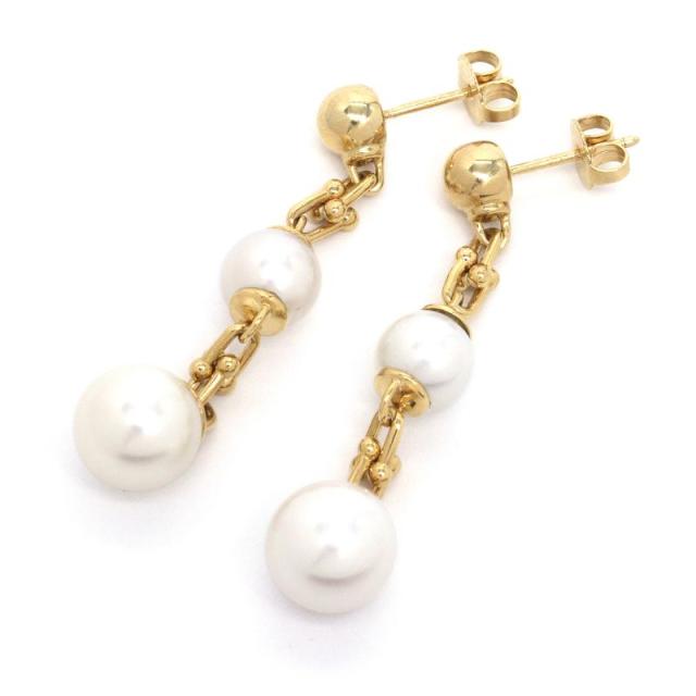 ティファニー ティファニーハードウェアトリプルドロップリンクピアス K18YG パール 揺れる イエローゴールド 地金約6.7g 中古 送料無料