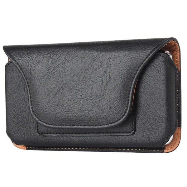 ベルトポーチ横型 小型 スマホ ウェストポーチ 薄型 スリム スマホホルダー (ブラック, 5.5インチ)