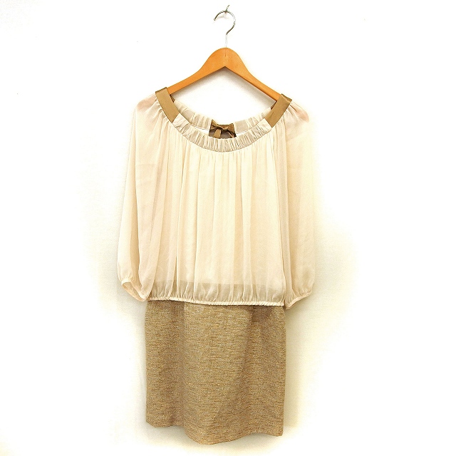 【中古】ノーリーズ Nolley's sophi ツイード ワンピース タイト ひざ丈 シフォン リボン ラグランスリーブ 長袖 38