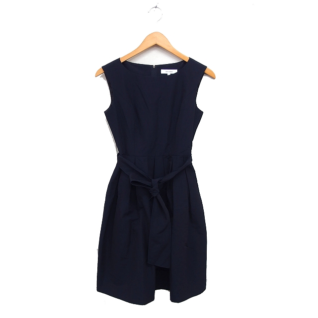 【中古】エムズセレクト m’s select タック フレア ワンピース ノースリーブ ひざ丈 リボン 無地 コットン 綿 34