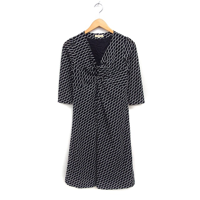 【中古】avienne 柄 ツイスト ワンピース 7分袖 ロング丈 38 ブラック 黒 /FT28 レディース