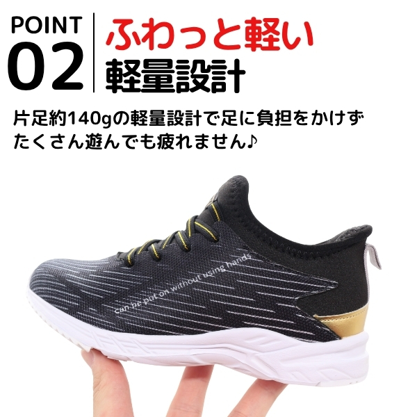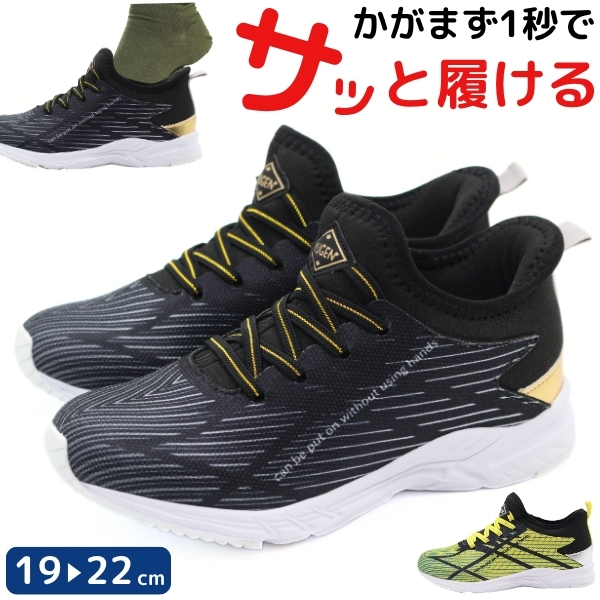 スニーカー キッズ ジュニア 子供 靴 スリッポン 黒 ブラック イエロー 軽量 軽い かっこいい シンプル 学校 通学 通学用 運動 スポーツ 外履き 履きやすい ハンズフリー 運動靴 手を使わず履ける 屈曲性 小学校 中学校 遊び クラブ YUGEN IM-2509