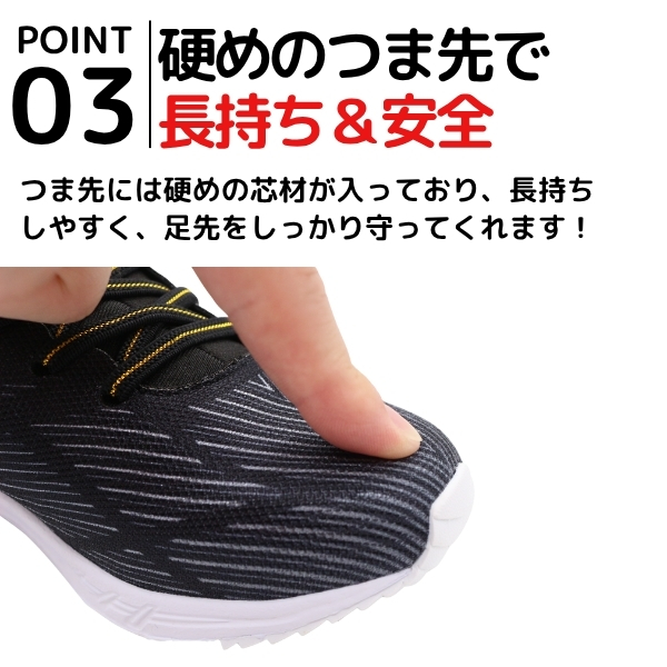 つま先には硬めの芯材が入っており、長持ちしやすく、足先をしっかり守ってくれます!