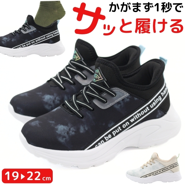 スニーカー キッズ ジュニア 子供 靴 スリッポン 黒 ブラック ベージュ 軽量 軽い かわいい シンプル 学校 通学 通学用 運動 スポーツ 外履き 履きやすい ハンズフリー 運動靴 手を使わず履ける 屈曲性 小学校 中学校 遊び クラブ YUGEN IM-2511
