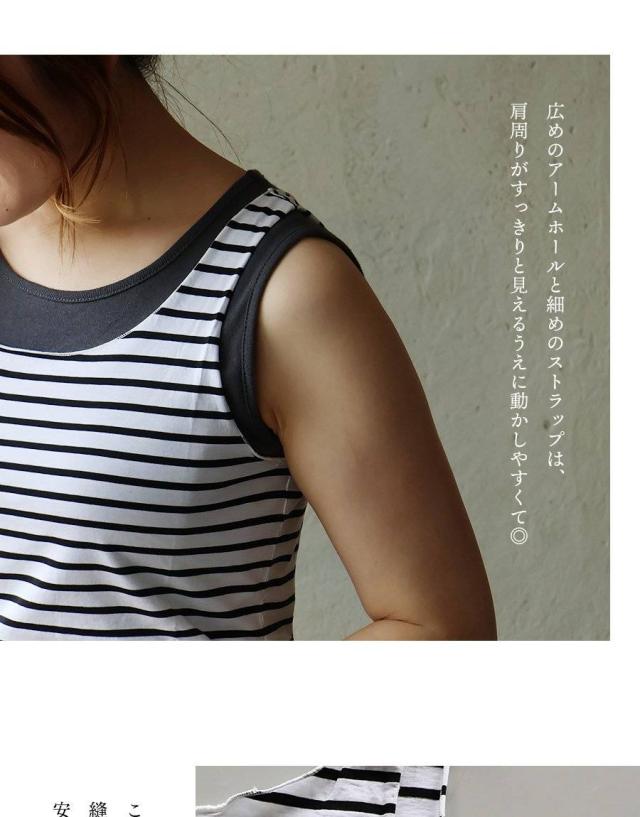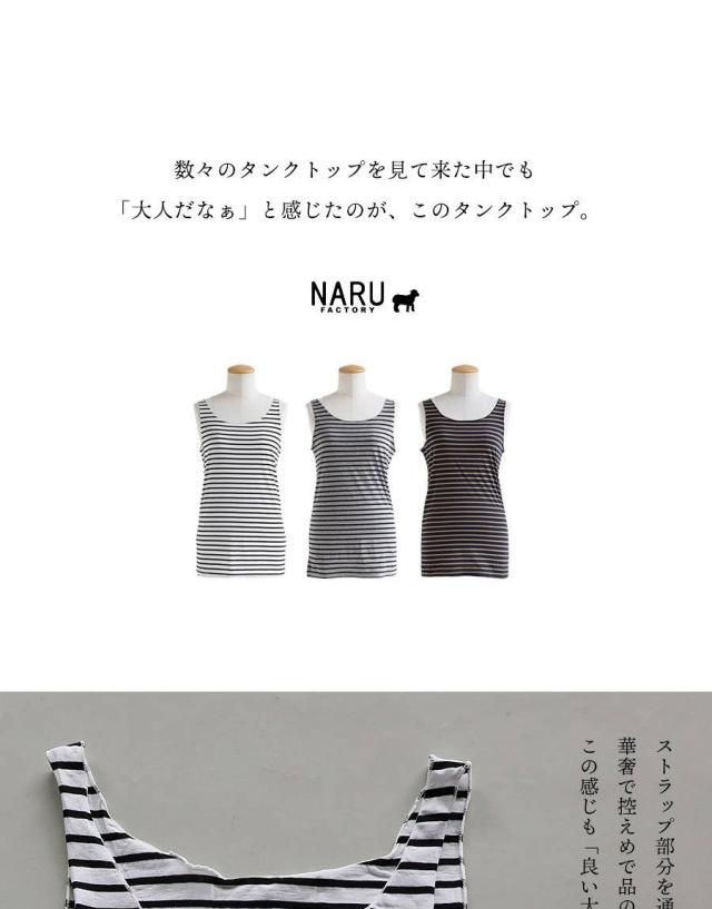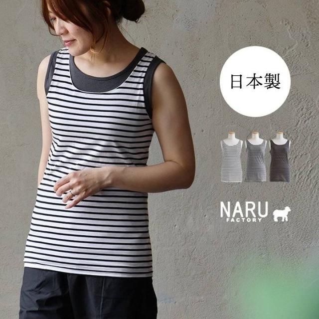 【メール便25】 タンクトップ タンク レディース クルーネック 重ね着 メロウ ボーダー柄 綿100 コットン 日本製 薄手 伸縮性 涼しい 通気性 カジュアル 夏 パティ NARU ナル