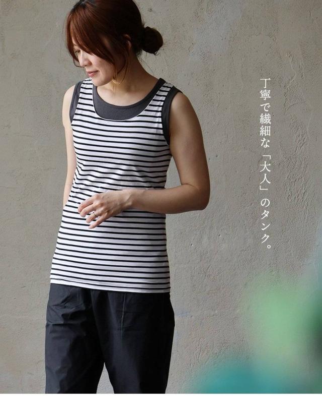 タンクトップ タンク レディース クルーネック 重ね着 メロウ ボーダー柄 綿100 コットン 日本製 薄手 伸縮性 涼しい 通気性 カジュアル 夏 パティ