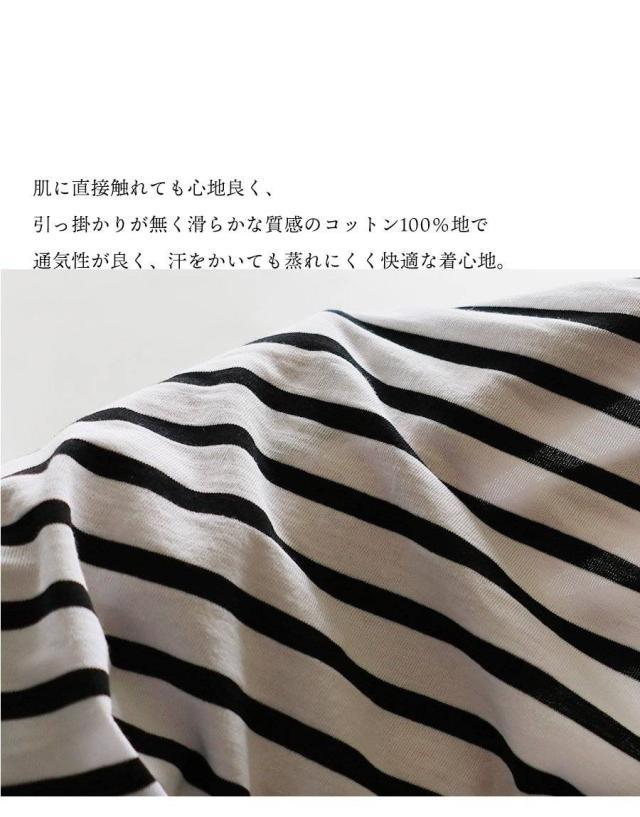 ・肌に直接触れても心地良く、引っ掛かりが無く滑らかな質感のコットン100%地で通気性が良く、汗をかいても蒸れにくく快適な着心地。