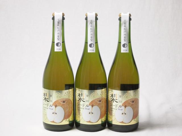 3本セット(梨のスパークリングワイン 千葉県松戸産梨シードル6%甘口) 750ml×3本
