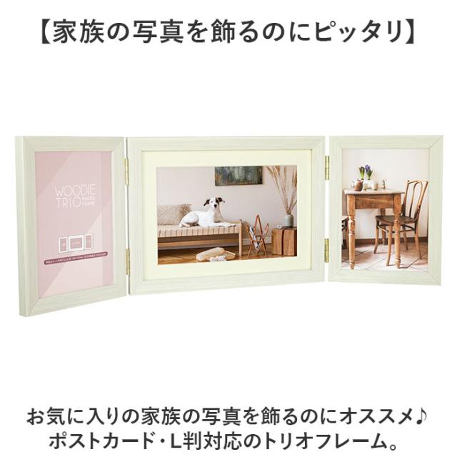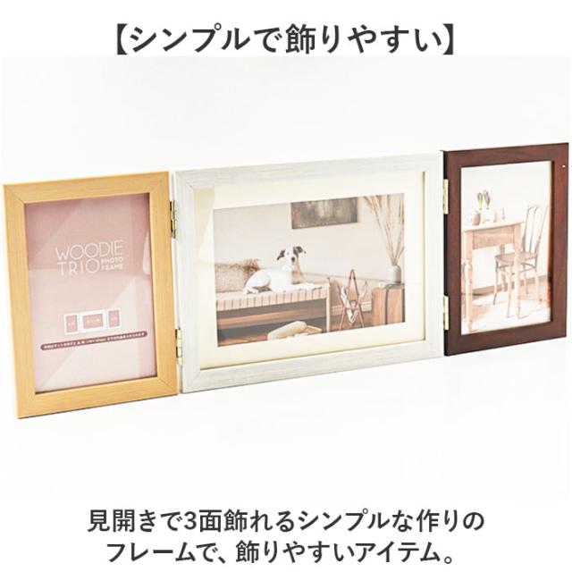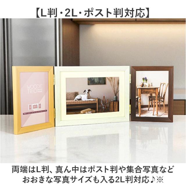 フォトフレーム 2L 3面 通販 万丈 ウッディトリオ フォト フレーム フォトスタンド 写真立て 写真 スタンド 3枚 横型 コの字型 立て掛け はがき ポストカード 額縁 おしゃれ 木目調 シンプル アート インテリア雑貨 インテリア小物 インテリア