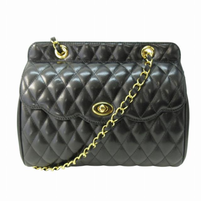 【中古】ハナエモリ HANAE MORI ワンショルダー バッグ ロゴ チャーム キルティング 黒 ブラック レディース