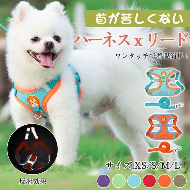 ハーネス 犬 犬ハーネス リード リードセット 犬用 おしゃれ 犬用ハーネス 超小型犬 簡単装着 中型犬 大型犬 胴輪 ペット 脱