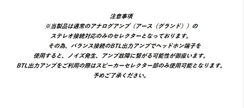 注意事項 ※当製品は通常のアナログアンプ(アース(グランド))のステレオ接続対応のみのセレクターとなっております。その為、バランス接続のBTL出力アンプでヘッドホン端子を使用すると、ノイズ発生、アンプ故障に繋がる可能性が御座います。BTL出力アンプをご利用の際はスピーカーセレクター部のみ使用可能となります。予めご了承ください。