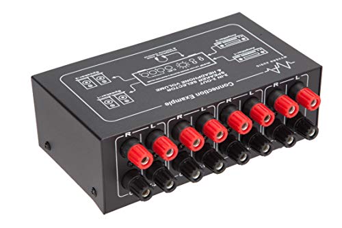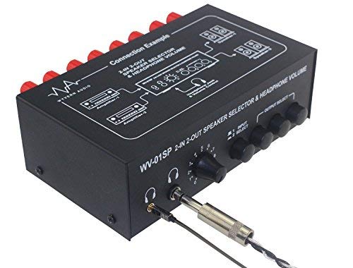 スピーカー アンプ セレクター スイッチャー イヤホンボリューム機能付 2in 2out ※バナナプラグ式ターミナルタイプ [ヘッドフォン (6.3&3.5) 対応]