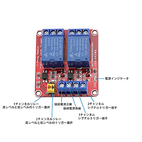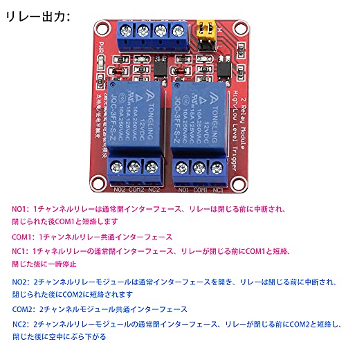 オプトカプラ付き 12V 2チャンネル リレー モジュール 高低レベル トリガー 2個セット