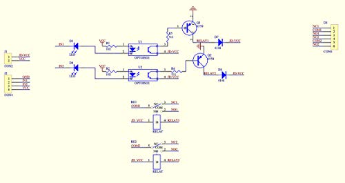 5V 2チャンネルリレーインタフェースボードで、それぞれ15-20mAの駆動電流が必要です。